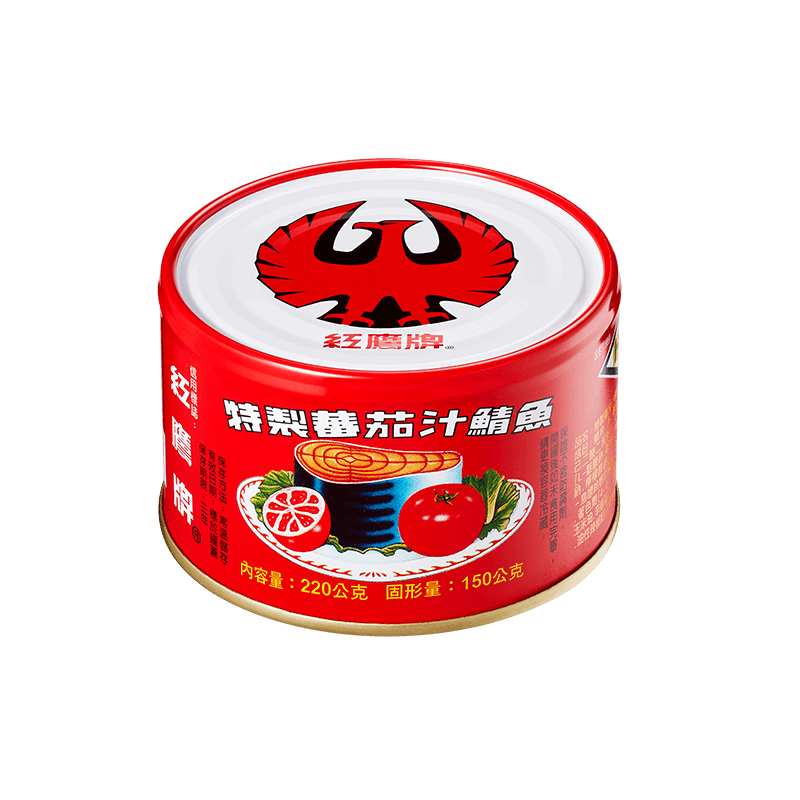 鯖魚、水、蕃茄糊、糖、鹽、大豆沙拉油、甘草粉、油性辣椒紅(葵花油、辣椒)、粘稠劑(乙醯化己二酸二澱粉)、調味劑(L-麩酸鈉、胺基乙酸、DL-胺基丙酸、琥珀酸二鈉、檸檬酸鈉、5'-次黃嘌呤核苷磷酸二鈉、5'-鳥嘌呤核苷磷酸二鈉、甜味劑(甘草萃)、乳糖)、著色劑(4-4-二酮-β-胡蘿蔔素、玉米澱粉、玉米油、辛烯基丁二酸鈉澱粉、生育醇(維生素E)(抗氧化劑))