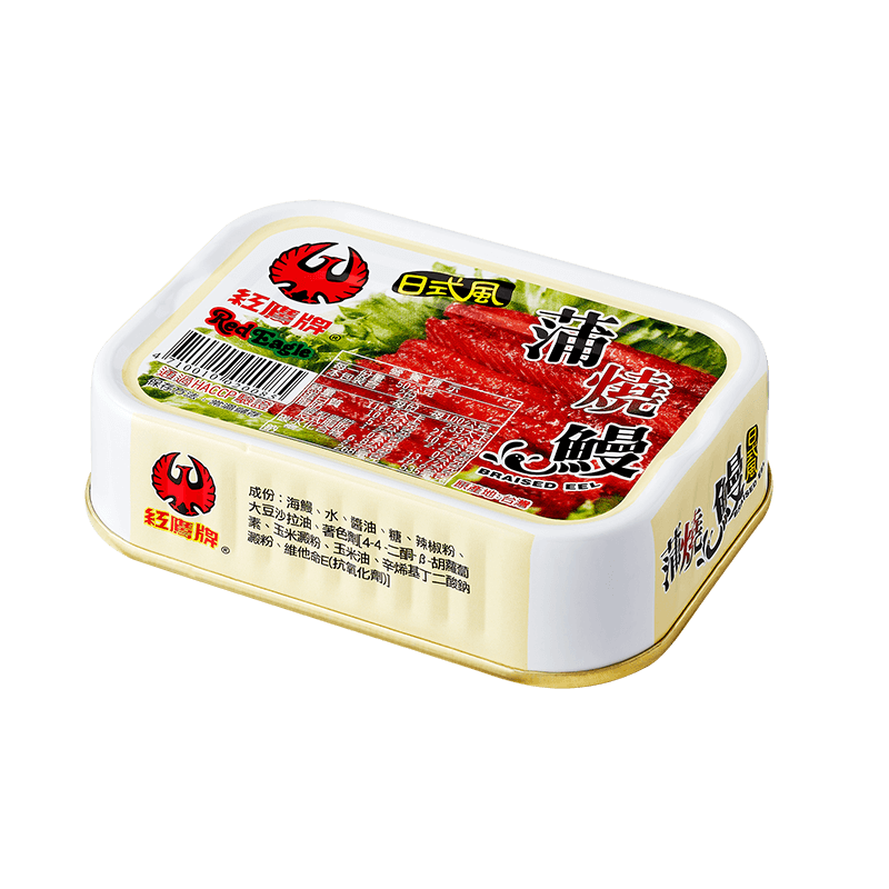 海鰻、水、調味汁(黃豆、小麥、糖、鹽、粘稠劑(乙醯化己二酸二澱粉)、大豆沙拉油、辣椒粉、甜味劑(甘草抽出物))、著色劑(4-4-二酮-β-胡蘿蔔素、玉米澱粉、玉米油、辛烯基丁二酸鈉澱粉、生育醇(維生素E)(抗氧化劑))